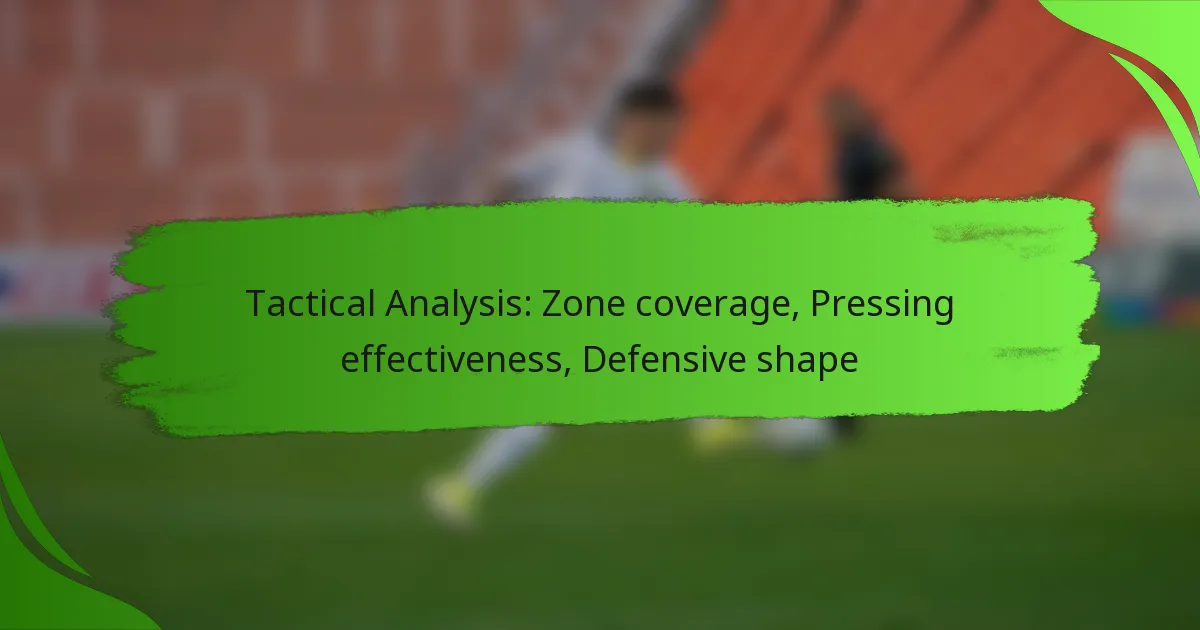 Tactical analysis of defensive strategies such as zone coverage, pressing effectiveness, and defensive shape is crucial for understanding a team’s performance. Zone coverage allows defenders to anticipate plays by covering specific areas, while pressing effectiveness determines the aggressiveness of engagement when out of possession. Additionally, a strong defensive shape enhances communication and organisation, enabling teams to adapt to opponents and minimise scoring opportunities.